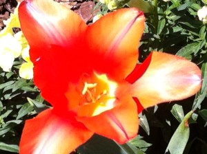 I had to smile when I entered the gardens today. On my last visit two weeks ago, The petals on the tulips were closed tight, rigid and upright. Today, they were splayed open, faces towards the sun. Those tulips mirrored my own feelings.